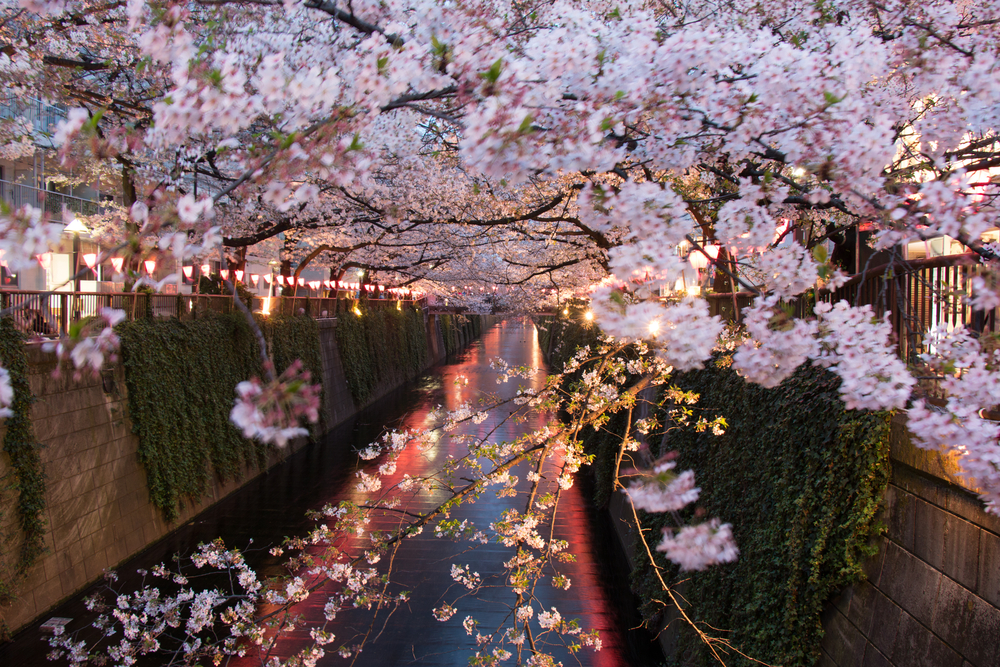場所によっては夜間に桜をライトアップし、提灯で道を照らし、夜桜見物をすることもでき、平日でも会社帰りの花見客が訪れ、賑わいます。